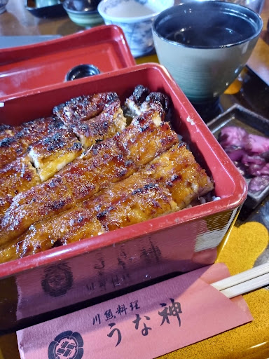 Read more2023年 土用の丑の日の1日前に行きました。 注文したのは、うな重と、 うな重に鯉のアライ付きの定食。 昨年より¥100値上げされていました。 開店時間11:00の15分前にお店に到着。 着いたら既に開店していて入店できました。 次々人が入り11:05には満席でした。 今回気になった事、 忙しいのは分かるけど、 お膳の上の器や箸がバラバラとなったまま運ばれて来たのは残念でした。 名札に研修中とされていたので 夏休みのバイトさんかもしれませんが、 その辺の教育は最低限お願いしたい。 写真を撮るために揃えましたが… うなぎはやっぱり美味しいですね。