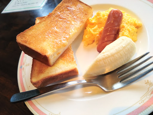 接客が最低な店😡 初めて入ったが、隣の馴染みの客と思われる夫婦と明らかな差をつけられた! まず、モーニングのトーストについて子どもにも分けたかったから写真を見て「トーストは2個つくんですか? 」と質問したら「ジャムか小倉のどちらかです😤」とキツい口調で返される。 「いえそうではなくて、パン🍞が2個つくなら、子どもにもわけたいので、片方にはバターなしにしてもらえますか?」と言うと「ついてしまうといけないので両方ともバターなしにしますね!」と勝手に言いきって戻ってしまった。 何あれ感じ悪すぎな態度やね!と一緒に行った母もイライラ💢 普通どこの店でもそれなら別の小皿にバター乗せときますねとか、親も子どもも楽しめるように配慮してくれるんですけどね😳 そして隣の客の男性が『ホットケーキでジャムつけて?』とメニューにはホットケーキにジャムの有無の選択はないが注文したら、にこやかにジャムですか~😊わかりましたぁと了承。 そして、コーヒーを持ってきたが無言で!無表情で置いていく💢 隣のテーブルの夫婦にはにこやかに声を掛けて置いていた。
