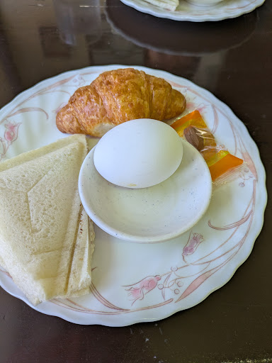 Read moreぶらりと モーニングに行きました 車は かなり沢山止まっていました お店の中は 常連さんで 混んでいました お店の女性が お水とお手拭きを 持って見えました 一言も 言わず お水を置いて 行かれました コーヒーを 注文すると パンとホットサンド 卵(熱々でした) お菓子が1個 無言で 置いて行かれました ホットコーヒーが その後で やはり 無言でした え〜喋ることが 出来ないのかな⁉️ と 思ったのですが その後常連さんらしき人が 帰って行くときに 楽しそうに 座談して見えたので あ〜喋るんだ‼️ 二度目は 無いな〜と 思いながら 帰ってきました ホットサンドもパンも とても美味し...