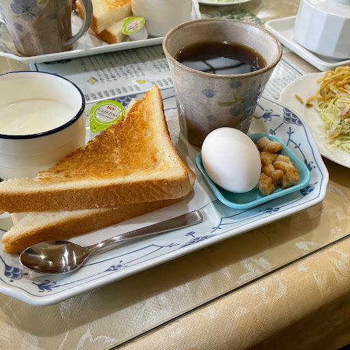 Read moreモーニングでうかがいました。 コロナ禍の朝7時過ぎでも、常連さんでにぎわっていました。 飲み物を注文すると、まず飲み物とトースト、ヨーグルト、ゆで卵、そしてあられが来て、その後サラダと油そば?が別のお皿できました。 トーストには、ジャムが挟んでありました。 モーニングメニューがなく、たずねもしなかったので、トーストに何をぬるか、サンドイッチ等選べるかわかりませんが、どれも美味しくいたはだけました。 珈琲や紅茶は400円、とてもお得だと思います。またPayPayが使えたので、2割バックも受けられまし...