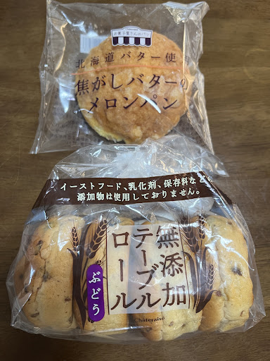 ◎ 無添加テーブルロールぶどう4個入 216円 ◎焦がしバターのメロンパン...