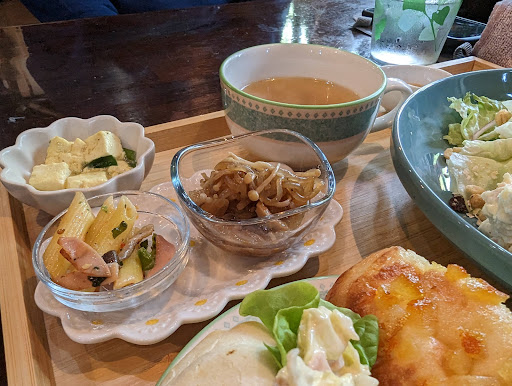 ランチで寄りました。 オーダーはハンバーグランチとアイスコーヒー、ベイクドチーズケーキ。 ランチ自体は家庭料理っぽい感じで普通ですが、評価レベルは★1つですね。 ■ハンバーグ 小さめサイズの手捏ねのようですが、ソースが不味い。マヨネーズとウスターソースを混ぜただけ?見た目もおいしそうにはみえないし、香りもしない。かなりマイナス。 ■パン 手作りパン?なんですかね? バローの店内で売っている98円のパンの味がしましたwそのうえおいしくない。 バローのパンのほうがいいですね。 テイクアウトもできるみたいですが、大量に売れ残ってました。あれは売れ残りと断言します。味も見た目もよくないから買わないでしょう。 ■アイスコーヒー ボトルコーヒーをそのまま出してる?小川珈琲のお店と書いてありましたが、自家焙煎のお店ではないことを考慮しても、これはUCCのボトルコーヒーをそのまま出してるのかなと疑ってしまうほどの味。 ■ベイクドチーズケーキ 最低最悪レベル。 不味すぎる。こんなまずいケーキよく作って客に提供できるよね、と言いたい。 センスないというより、料理向いてないんじゃないですか?と思えます。 シフォンケーキをオーダーした相方は、これはシフォンケーキじゃないと言ってましたw あえて何なのかは聞くのやめましたwwシフォンケーキがまずいってwヤバいですよw