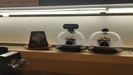 Read moreConveyor belt sushi chain with decent quality sushi. Two nigiri sushi's will cost you from 115 to 280 yen. It has a large assortment of sushi's (unagi, anago, tamago, ikura, sea brass, urchin, octopus, and many others).