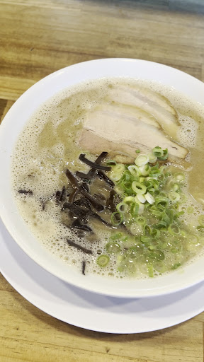 ●スープ 濃厚な豚骨スープは脂が乳化してるかのようにまろやかでコクがあり、臭みがほとんどない。それでいて豚骨ね旨みがじわじわと感じられて非常においしい。 本場の博多ラー麺はカエシの味があまりしないし、豚骨の旨みも感じにくい気がするが、ここのは両者共によく感じられで好み。お台場の博多だるまの上位互換。ニンニクとの相性がよく味変も楽しかった。