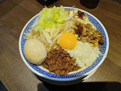 やっとの事呼ばれたと思うと「3名でお待ちの~」いや3名では無いんですが。二人と一人ですよ、と説明してあげる。 店に入った後にさっき出て行った3名が戻ってくる。 ああ、その3名だったのか?とは思うが、客が出た分は席が空いている・・・・。 じゃあ何でさっさと呼ばれなかったのかが不思議に思う。 最低でも4人は客が出てっている筈。まあいいやとラーメンをここでまた15分ほど待つ・・・とラーメンが出てくるのだが、ここで全員分出てくる。 え?なんで?なぜ別々の時間に頼んだラーメンが順番に出てくるのか理解が出来ない。 最初にいた三人は私が食券を買う時にはカウンターに居たはずなので、どれだけ待たせられているのか想像がつかない。 一時間?もっとかもしれない・・・。まあ来たまぜそばを混ぜて食べだすが、美味しくない。 マヨネーズは合わないし、何より汁が丼の5分の2位入っている・・・。 まぜそばを頼んだはずなんだが、汁がたっぷり入っている。 ただ普通のメニューのラーメンを無理やりまぜそば風にしただけのメニューなのかと。 普通はまぜそばとの名前に見合う風に改良して調理するだろうと。 最低でも40分は待ったはずだ。そして美味しくない・・・。