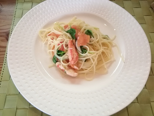 パスタも塩加減絶妙、トマトの酸味もいいアクセント。 ズワイガニの身がゴロゴロはいっていて、 パスタの量は少なめですが、大満足。
