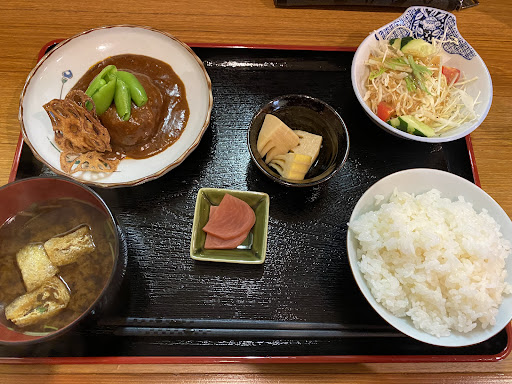Read more4月末GW前に初めて来店です。徒歩圏内ですが、行こう行こうと思いつつ行けてなかったので。混むかな?と開店早々の11:45ごろに着くと最初のお客さんでした。雨天の加減もあったのかもですが。ランチを悩んでると、店主から日替わりで魚か煮込みハンバーグを勧められて、煮込みハンバーグに。あとから来た年配のお客さんには魚ではなく。マグロの刺身ですと話されており、僕も聞きたかったなと。でも夜勤前のお昼ご飯だったので生物は避けるべきだったかもしれませんのでちょうどよかった。小ぶりの柔らかなハンバーグはふわふわで箸で割ると崩れてしまいそうでした。デミグラスソースも絶妙な味付けで、クセが強いとしんどくなるのですが、よく絡んでハンバーグを食べ終えたあとも名残惜しさがあって箸で汚いですが、すいませんとばかりに寄せて食べてしまってました。小鉢の筍は旬ということもあり美味しいはずですが、少しかためで味がよくししゅんでなかったですね。味噌汁とご飯の量は見た目よりあって、満足度が高かったです。近くな...
