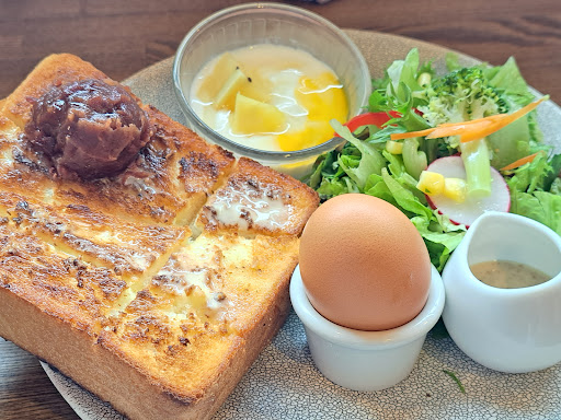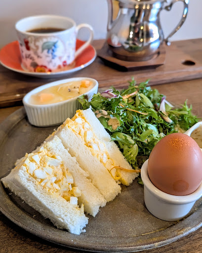 少し待ったあと、案内いただき入店。店内は綺麗な内装だし、落ち着いた雰囲気。 モーニングメニューは6種。 今回は小倉トーストに、生クリーム課金。 ワンプレートにトースト2切れ、サラダ、ゆで卵、ヨーグルト。個人的に良いのがドレッシングが別容器なこと。 プレート内がベタベタしないし、トーストにドレッシングがつかない。あと、生クリームはかなり多め。 トーストは塩味がしっかりしたバターなので、小倉の甘さと生クリームがすごくマッチ!あと2枚食べられますわ(笑) コーヒーはこれまたお洒落な専用トレーに乗ってます。 またコーヒーはポットに入ってて、大体1.5杯くらいの量かな。 甘味もありながらも、あっさりとした味わいで飲みやすい。 次回はベーコンチーズトーストが食べたい。 あ、他の人のオーダーを聞いてみると、玉子サンドが人気みたいですね。ただ「ありますか?」と聞いている人がいたので、たぶん、売り切れちゃうこともあるのかな?まぁ、...