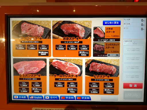 オープン二日目店内に入るのに 一時間かかりました😅 やはり 二日間は無料券が(計300枚)がもらえる🙌🙌🙌 やっと 店内に入ると ラーメン店みたいに券売機が有ります❗️ ステーキの他 カレーライス ハンバーグも有ります🎵 (カレーライスを食べていた人 今日はいなかった・・・)