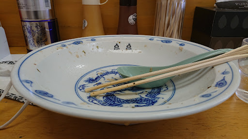 ただ、カウンターで食べてたら、厨房から、 ホースの水がとんできて、着てた服が濡れた。 閉店間際の掃除だけど、びっくりしました。 ラーメン食べてて水あびるの始めて笑