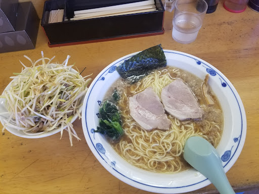 Read more以前から気になっていたお店、所謂「ラーメンショップ」に似た佇まい。 購入は券売機で。 券売機のボタン一番左上にある(定番と思われる)醤油ラーメンを選択。 味は「あっさり」でもないが「こってり」でもない、いい塩梅。 最近濃い味ラーメンが苦手になってきた(最近は天一、来来亭がきつくなってきた)私だが、スープは全て飲めた。 麺はやや細めのストレートだが、もう一捻りあっても良いような気がした。(個人的には九州地方でよく見る「臭みの強い」麺が好きなので。) 値段が700円と、それ程安くはないが、なんとなく麺のボリュームが多めのような気がした。 営業が午前中〜昼過ぎで終了してしまうので時間に注意です。 店員の対応(挨拶等)はハキハキ...