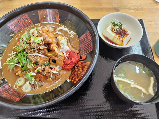 Read more仕事で豊川インターからの帰りに昼食で訪れました。 いつもは浜名湖S.A.でランチをしますが、ここに寄ったのは初めてです。 セットメニューはどれもがっつり系で、男のしょうが焼きカレーセットを食べました。 ご飯のあるセットで自由に取れる生卵を掛けました。 ざるそばは食べ放題とも書いてありました。 お味はまあまあでしたが、どのメニューもサービス精神が感じられ気になったので、次からは毎回ここに寄っていろいろ試そうと思います。