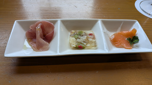 1人で来店し、ランチBセット注文。お店の案内に「ペーザロのワインを使用した」と書いてあったので、てっきりいろいろ飲めると思っていましたが、グラスワインは1種類で品種も書いておらず、あまりおいしいものではありませんでした。ボトルワインの種類は豊富なので、3.4人で来る人には選択肢がありますが、1.2人のワイン好きが楽しめるように、グラスワインも3種類ぐらいの中から選べるようにしてほしいです。