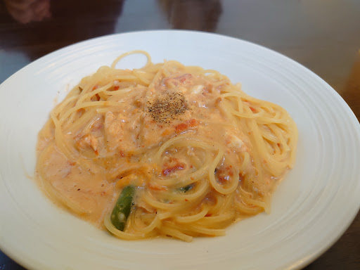 It was a wednesday night and most of the italian restaurants around kakegawa is closed when we came across this place. It's a small place with really a few tables inside yet it was very cozy that way. We ordered the omakase course for 2,800 yen. The lady staff was iind enough to ask us about our preference for the pasta either 2 types of pasta or just one and are we allergic to anything etc. we were served with an italian omelet after the salad and a slice of meatloaf and both were good. A glass of wine costs 460 yen (around that price) and they would give recommendation on the wine they have. The pasta were marinara and creamy mushroom pasta with gorgonzola cheese( i think.. the wine is just good) yet I do remember it was very tasty and creamy. We were asked about what we want to drink with our dessert beforehand and I chose hot coffee the dessert platter was just a delight everything in it is just good the balance of sweetness and texture...
