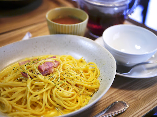 カルボナーラは、普通。量は少ないと思ったが、食べ終わったらなぜかかなり満腹だった。セットの飲み物は掛川和紅茶にした。たっぷり飲めてありがたいのだが、一度に全部カップに入れられない→ ポットに残っている紅茶が濃くなりすぎるので、その前に茶葉を取り出したかった。セットのスープは野菜スープ? 薄くて(塩気という意味ではなく)野菜感ゼロでちょっと残念。デザートの方が充実しているようなので、ランチよりカフェ利...