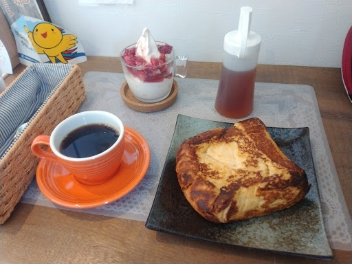 ランチをいただきに初めて伺いました。入り口の黒板にスイーツ系のメニューが多く書いてあったので、ランチ的なメニューあるのかな?とちょっと不安になりながら入店。ランチメニューはしっかりあって、どうしようかと迷いました。インパクト的にフレンチトーストが美味しそうだったので、ブランチセットとコーヒーを注文。出てきたフレンチトーストは、ここでしか食べれないクオリティで、すごくおいしかったです。鴨のロース?も分厚くて食べ応えがあり。スープも変化球というかそういう味で来るかとおいしく頂きました。バニラのアイスクリームも濃厚で、これだけでもまた食べに来たいです。コーヒーはオーガニックなものにこだわっておられるらしく、今回の銘柄はブラジル。すごく飲みやすくて、Lサイズを頼んだのは正解。たっぷり楽しめました。違う銘柄も飲んでみたいので、...