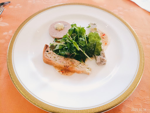 缶詰を使わず、出汁から手で取っているそうです。 この価格でしかも一人でそれをやるというのは正直狂っています。 独学で学ばれたということですが、独学ゆえこだわりが強いのか、肉料理のコースを頼むと、よくあるプレートに焼いた肉が一つあるのではなくて、色んな肉料理が乗っています。これもまた頭がおかしいです。どれだけ手間をかけるんですか。 前菜のテリーヌだけでも、何種類乗せるんです??おかしいですよ。普通はテリーヌ一切れとサラダと漬物くらいです。
