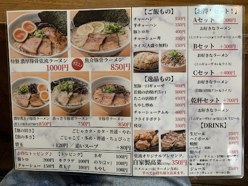 チャーハンなどとのセットもありましたが、今日は純粋にラーメンを楽しみたかったので頼まず、替え玉を頼みました。お昼はサービスで50円?とても安い。しかも丼に入れても味が薄まった印象がなく濃厚なまま。これはすごい。 濃厚豚骨特製ラーメン1200円を頼みましたが、これで替え玉50円なら全然高くない。替え玉は連れと分けましたが、これで充分お腹いっぱい。満足。