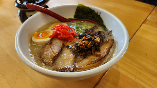 スープは丁寧に炊いておられるのが良くわかる、濃厚で味わい深い。そうそう、こういう豚骨ラーメンを食べたかったんだとつくづく思いました。 チャーシューはトロトロで口に含むほろっと旨味を語りながら崩れていく。ちゃんと箸で持てるのに不思議です。 きくらげ、煮卵、葱、海苔、そして卓上に置いてある生姜と辛みがある高菜を加えると完全に味が完成されて、それぞれの具材が自分の仕事をして完璧な味わいです。みんなが描く豚骨ラーメンのお手本のような味わいでした。 本場では生姜は入れないそうですね。なくても高菜で十分。今度は買って帰ろう。