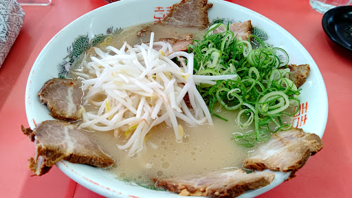 Read more加古川市の長浜ラーメンが気になったので初訪問しました。チャーシュー麺900円、替玉150円を注文(消費税込みの値段設定最高)会計1050円でした。Google口コミを見て予習してたので豚骨ラーメンに山盛りもやしが入ってたのは知ってたから驚かなかったけどスープがめっちゃぬるくて残念やったわ。替玉150円も高すぎやろって思ったし硬麺でオーダーしたのに柔かった。バリカタ、粉落としって言った方が良かったんやろか?定食にしたらコスパお得なのかな?知らんけど。水は給水塔があってセルフサービスやった。スープは確かに薄味やったけど本場博多の長浜ラーメンはもっと薄味なので問題無いです。最近は客に薄味でラーメンを提供して各自がスープのタレで味を調整するのが長浜家流らしいです。ただそうなるとラーメンのスープがぬるいと余計に冷たいスープになるので最初からぬるいのは残念です。チャーシューは普通やった。もやしがサービスの山盛りなので好きな人は嬉しいやろうね。辛子高菜は辛口で良かったけど乾燥してパラパラなやつで小生好みでは無かった。駐車場があってス...