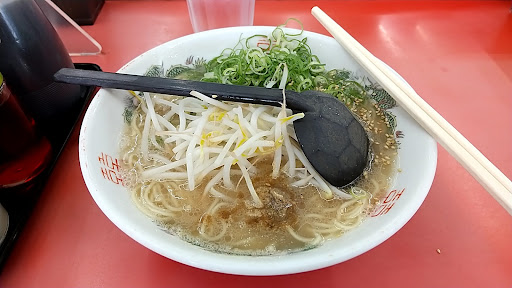 本場の長浜ラーメンに似た、細麺の豚骨風味のラーメン屋。播州地区でチェーン展開されているお店で、加古川以外に姫路にもある。お店は女性2人で運営されているようで、テーブル席は無く厨房を取り囲むようにカウンター席が並んでいる。席数は20人程座れる程かな。半セルフ式でお水は自分で用意して、カウンターに着席後注文するスタイル。メニュはー無く壁に掛かっているメニューから注文。お店の女性の人はあまり愛想は良くなく、初めて訪問の人は少し、不安と不満を感じるかもしれない。行った日は半チャーハンセットを注文。5分程してラーメン登場し、数分遅れてチャーハン登場。女性2人でラーメン担当とチャーハン及び他の担当と、担当分けされている様でチャーハン担当の女性がワンテンポ遅いかな( ^ω^)・・・。ラーメンは豚骨ラーメンに細麺が絡んで美味しい。チャーハンもパラパラしていて旨い。もちろんテーブルには長浜ラーメンのお伴ともいえる紅ショウガがあり、ラーメンを途中まで食べたところで紅ショウガ投入し、スープを改造。紅ショウガの酸味と辛みがスープにアクセントがついて美味しい。チャーハンにも投入し食す。セットメニューも豊富でラーメン単品は¥660と懐に優しく、店の駐車場も有るので車でも訪問しやすい。お店のお客も半数以上が常連さんの様なので、女性店員さんの応対もしょうがないか・・・・・。値段と味で考えれば、再訪ありのお店。テーブルには高菜炒めが有るけど、これが中々の辛さで、辛い物好きのにゃんこ先生もかなり汗をカキカキ食べた。初めての人は少し取ってから食...
