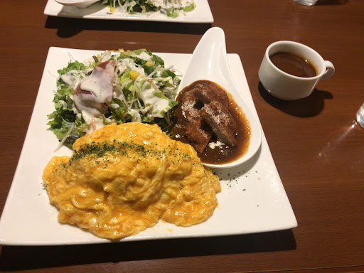 Read more基本的はオムライスと、ヒレカツ、エビフライ、ハンバーグの中から1品を主体に前菜、スープが付いてセットメニューの基本となります。大体1500園前後。コーヒーなどの飲み物も一つ付きます。