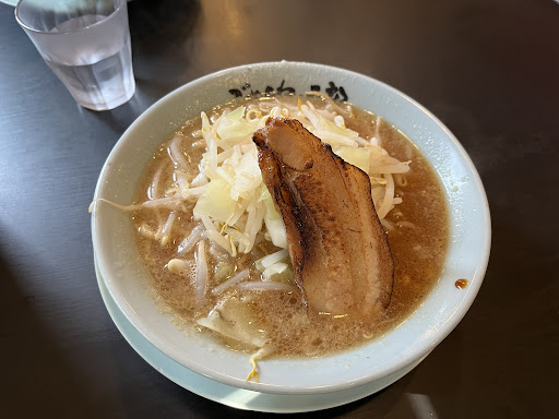 Read more二郎系ラーメンを一度食べてみたかったので、友達の勧めもあり行ってきました。野菜マシ味濃いめ(無料)で注文。あまりのボリュームに思わず店主の顔を見ると、目が合ってにっこりされました。これで900円は安すぎです。 キャベツともやしたっぷりで、ニンニクも無料で、分厚くて柔らかいチャーシューが2枚入ってました。本家の味はこってりだそうですが、こちらのはそこまでこってりではなく、中太麺だったのがまた良かった。とにかく大満足。麺大盛りにしなくて良かったと、心底思いました。 22:40くらいに行きましたが、他にお客さんは1人だけで貸し切り状態でした。もっとお客さんがいてもおかしくないのにと思いながら、ぜひまた行きたいと思いました。水も普通に美味しかったですよ。店主も店員さんも非常に愛想が良く、威勢も良いので見ていて気持ちが良かったです。BGMも私好みで好きでした。これから通うので絶対に潰れないでください。