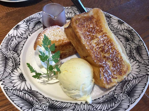 ○フレンチトースト680円 全て店内で焼き上げるもっちり食感の自家製パン、あずさ珈琲の為だけに安曇野より毎朝届く安曇野牛乳と卵でしっとり焼き上げた、プリンのようにプルんプルんなフレンチトースト🍮