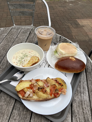 Read more2022.5月土曜10時半訪問。 テラスで食べる分と持ち帰り分を頼みました。 スープセット【スープ、ドリンク、パン】820円を頼みたかったのですが、テラスで食べるパンが “2個で361円” という条件を満たしていなかったようで適応されず単品の注文になってしまいました。 スープと一緒に食べるパンというのは、惣菜系になりがちだと思いますが、そうなると “2個で361円” をオーバーしてしまうと思います。パン一つ一つが割とお値段しますので。ですので、臨機応変に、パンの個数ではなく “361円までのパンがセット出来る”...