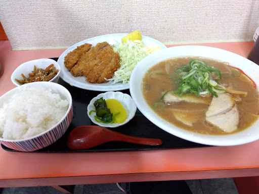 平日限定日替りランチ(トンカツ)¥880-を注文。 ラーメン¥700-+¥180-でトンカツ、小鉢、ごはんは、コスパ最強です。 醤油ラーメンは、肉厚チャーシュー3枚、もやし、ネギと待望のメンマが入ってて、スープは甘め。 トンカツは、柔らかくしつこくなく食べやすかった。キャベツは新鮮でタップリ、マヨネーズも惜しげなく添えられて、小鉢のキンピラも十分な量です。なおざりになりがちな漬物がキューちゃんと沢庵の2種類なのは、嬉しい。ごはんもシッカリな量です。 それから、水でなく、麦茶を提供してくれてます。 13:00頃訪店で、並ばずに着席できました。暫くするとお客さんが食事を終えて、次々と帰られてましたが、良いタイミングで、次のお客さんが来店されてアッと言う間に満席です。 15:00まで営業してくれてるのは、有り難いですね。 お店の方も親切です。 お腹パ...