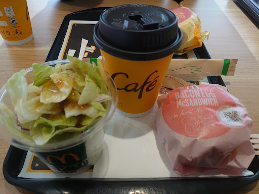 Read more入ったすぐ注文パネルがあり、使いこなせずカウンターに行くとレジが3つくらい並んでるのに店員が立ってないのでスミマセンと奥に居る3人くらい見えてる店員に呼びかけたが無視され、少々お待ち下さいとかのひとこともなく3回くらい呼び掛けてようやく対応。 カウンターでは注文出来ないのかと思った。 マックチキンナゲット15ピース入りでソースの選択を3つ選ぶのに、バーベキュー・マスタード・あとひとつ悩んでると全種類でも大丈夫ですよ、と言われたのでお願いしたが、家に帰って見るとマスタードが入ってなかった。初めにチョイスしたのが無くてかなり落ち込んだ。 アイスカフェラテにシロップ2つお願いして、はいわかりました!と言ってたのにシロップは1つだけでした。 しかもポテトやハンバーガー2つ、シャカチキも結構買って帰ったのに紙ナプキンが1枚も入ってなくて、嫌がらせかと思った。この店舗では注文したものと内容が合ってるか、帰る前には必ず中身を確認することをおすすめしま...