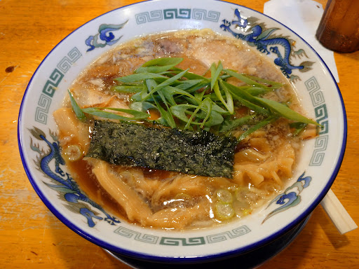 Well-known place offering soy sauce-based chicken ramen with add-ons like char siu & bamboo shoots.