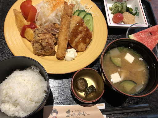 日曜日の正午に訪問しました。 お座敷や2階には団体のお客さんが。テーブル席は私たちを含め2グループ。 「ミックスフライ定食」1,738円を注文。 フライはどれもカラッと揚がり、唐揚げもにんにくが効いていて美味。 フライドポテトはケチャップなしでもいいくらい、よいお味です。 具だくさんの味噌汁は、具だけでなく量が多い! ごはんは一見、量が少ないかな?と思いましたが、深い塗椀に入っていて、十分な量でした。 キュウリのお漬物が辛すぎず、食感もちゃんと残っていて、さすが和食のお店と感じ入りました。 お店の方のご対応も落ち着いていて、ワンランク上のサービスです。(食後のお会計もテーブルで行います) 実は秋に法事を予定していて、その下見も兼ねて伺いましたが、ここなら安心して任せられそうです。