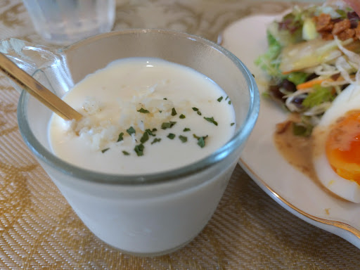 この日のスープは、さつまいもの冷製スープ。 さつまいもの甘さが引き立ち、とても美味しかった。