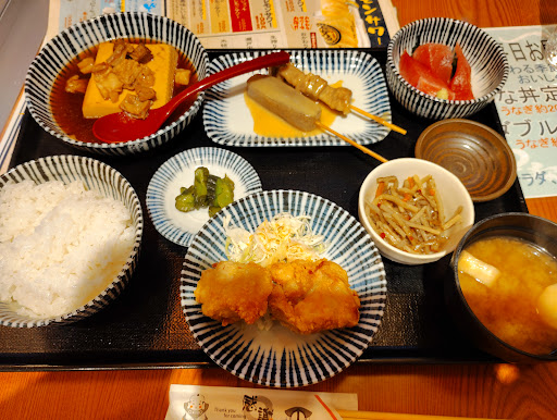Read more週末ランチ2人で利用。2人とも定食、ホットペッパーのドリンクサービスクーポン利用。当然ドリンクが先に来るので、詳しく説明のないお通し2種類を1品ずつ頂きました、美味しかったので飲む人なら定食待ちのお酒のお供にピッタリ、多分断れるので飲まない人は断わりましょう。肉豆腐定食、刺身プラスと牛タンメンチカツ定食玉子プラスも美味しかったです、シェアしたので品数もボリュームも満足。肉豆腐とレモンサワー推してるのでレモンサワー筋トレジョッキ追加しましたが、それでも2人で3000円台でした。週末ランチ利用なら空いてるしリーズナブル。麦茶、お水、あがりがセルフでしたが、個人的には飲まない時は遠慮なくドリンク頼まずに済むのでありがたい。少し声量が大きいお客さんに店員さんが配慮お願いされてました、私は居酒屋なので気になりませんでしたが、定食屋として利用させる方にも...