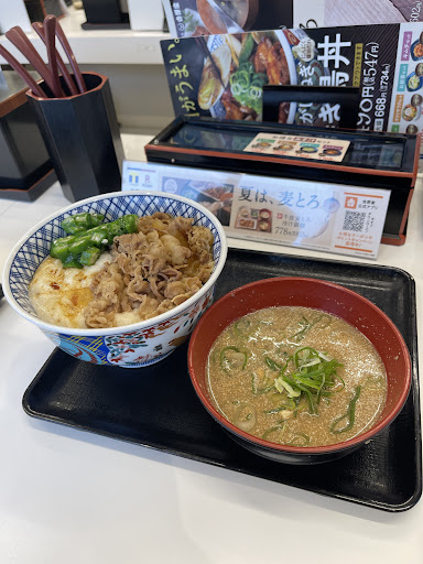 Read more本日発売されたばかりのカリガリカレーを頂きました。有名店とのコラボメニューとして発売前から注目を集めていたメニューだっただけに期待値が高すぎたかも(^^;)な評価でした(笑)確かにカレーそのものは奥行きのある複雑な味わいはしっかりスパイスが効いた本格を想起するに十分なもので後からじわりと発汗を感じられたくらいです。でも肉だく牛カレー、即ち牛丼の具が完成された牛丼の味わいなのとスパイシーカレーが一緒になっても私には合わない感じがしました(^^;) 普通の牛丼に別盛りでカレーがトッピングできるくらいの気軽なもののほうが良かったかも⁉️せっかくの本格カレーなのに福神漬けが無いのも淋しい(笑)トッピングの種類が違えどこのカレーでこの価格なら松屋のカツカレーが圧倒的に...