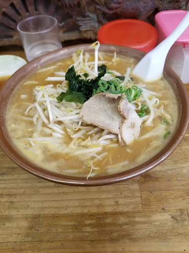 Read moreみそセット¥1080を頂きました。内容は『みそラーメン、焼きめし、餃子5個』です。個人的感想ですが、まずラーメンは白系味噌?で辛味はなく、お子様でも食べれそうな感じ。辛味が欲しい方は各テーブルに『辛子高菜や紅しょうが、ゴマ他色々』あるので自分好みの味にできますよ!麺はストレートの太さ普通、卵系の麺。すするとしっかりとスープも絡み付いてくるのが◎もやしはサッと炒めた感じでシャキショキな歯ごたえでした。(少し量が多め…笑)あと焼きめしですが、見た目はすごくあっさり系で色も白っぽく、薄味かなー?って思って食べると、まったくの正反対で、しっかり塩ベースで味付けされた焼きめしで美味しかった。(すこししょっぱいかな?)。餃子に関しては野菜多め?のヘルシー餃子でした。最後になりましたが、こちらのお店は食券制でした、入口はいってすぐ右手に自販機あり。自...