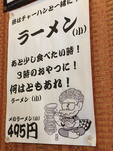 ってか、壁に貼ってあるPOPの絵は、あの「ラーメン大好き小池さん」ではないですか(笑) ※主に藤子不二雄マンガ「オバケのQ太郎」に登場する脇役キャラ