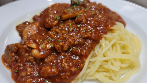 スパゲティーを頼んだら、若干茹ですぎで、ぼやーっとした歯ごたえだったけれど、それは調理担当の人で変わるみたいです(ソースをからめるだけなら、アルバイトさんも調理してるかな?)。