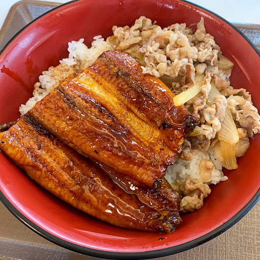 『贅沢にうなぎの蒲焼が盛られた牛丼』 種類が豊富な牛丼チェーン店の鎌ヶ谷初富店。