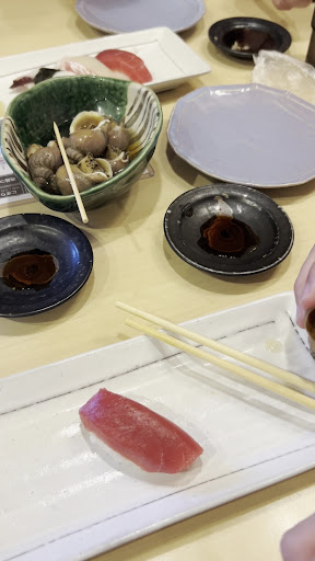 久々に来ました。 回らない回転寿司となかまうちでは、大好評です。 お寿司は最高です。ゲソが八十円であんなに美味しく、たまごも〜どれも最高です。 お店の方にお願いしたいのは、 タクシーを呼びたいのでお店でタクシー番号貼紙とかあると(書いてあると)たすかります。