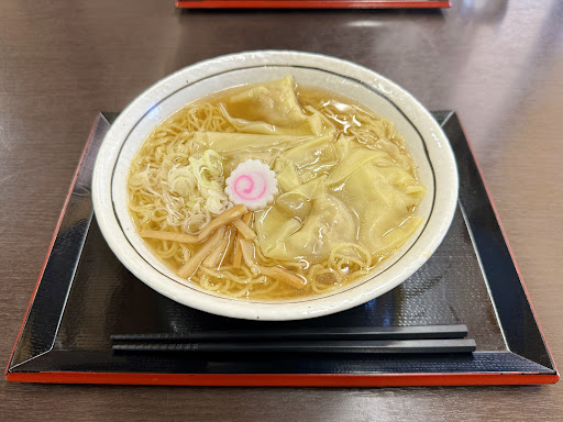 セルフサービスのため、受付でワンタンメンを注文し、番号が呼ばれたらラーメンを受け取りに行くシステムです。