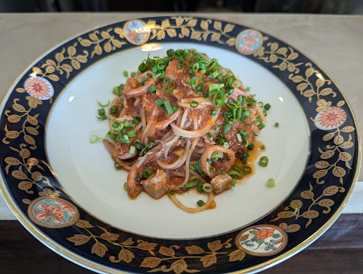 まず出てきたのが前菜。 サラダにビーフン、中華サラダ、フォカッチャとかなりしっかりめ。 イタリアンかと思いきや、創作料理系なのですね。