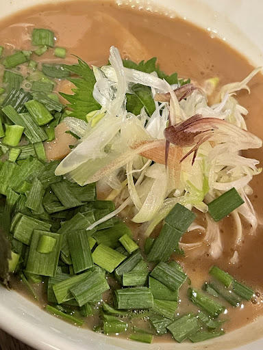 太く、よくからむつるつるとした麺 叉焼は厚く大きく、箸で切れるが底に残って食べ忘れるほど細かくはならず メンマと海苔はわれわれを安堵させる 丁寧にきざまれた 茗荷、大葉、葱のそれぞれの食感と香りは スープの奥深さを再認識させてくれる 追加注文のトッピングにある 吉田農園さん?の、ラーメンの具にしてはやや高級な 上質の野菜群は いずれも生食して美味新鮮絶妙な風味 乳化したスープにくぐらせれば気分は鍋 こんなラーメンは初めてだ