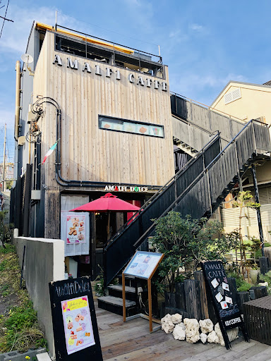 Read more主要な道路の一本奥にカフェがあります。 奥に入ると三階建ての建物が出てきます。 3階に上がると 海を見渡せるテラス席が出てきますが海風が強いので中で店内でいただきました。 店内では主にスイーツなどのケーキを出している見たいです。ほかのお客さんは携帯やカメラで ケーキを撮ってらっしゃる方が多かったです。 私は スープとサンドイッチが付いたセットを頼みました。飲み物はスパークリングワインと一緒にしました。トビが上を飛んでいて心配ですが 晴れた日にはテラス席でいただきたいですね。