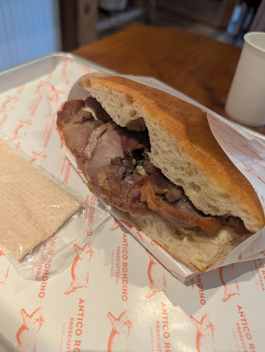 Read moreThe shop is down a side street off the main but very easy to spot. You order before you sit down but you can order to go. We tried the prosciutto and the porchetta and both were delicious. The prosciutto had soft cheese, salty ham, sundried tomatoes and peppery arugula, while the porchetta was a hot sandwich with hot porchetta and herb sauce. The interior is rustic and classic and full of charm. We're only here in Kamakura for a little bit but I'd love to come again and try the other sandwiches...