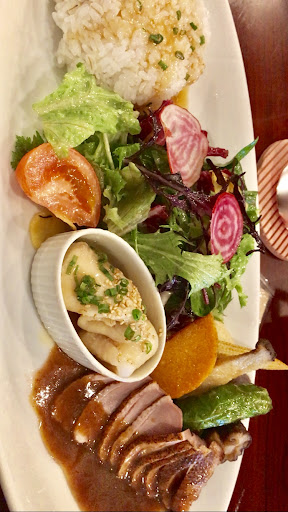 Read moreI love the ambience of the cafe. When we went there the weather is kinda gloomy and it was drizzling. It felt more like home. I had the specialty of the day which is duck meat, fish fillet with rice and salad while my friend got the omurice. The salad tasted so fresh like it was just freshly picked from a garden. The duck and fish tasted heavenly. I got the meal plus cheese cake and their houseblend raspberry juice for only ¥1500 which is a reasonable price talking about price of japanese meals. I also love the fact that they can speak English so it was easier for us to understand the menu and to convey what we want. I hope I can come back again and try their...