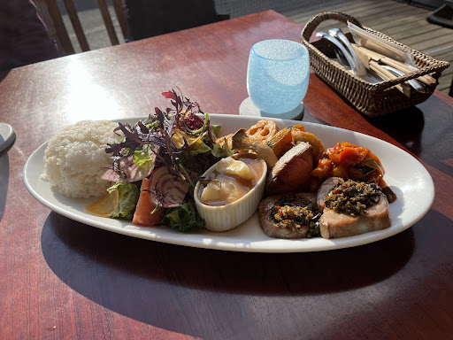 Read moreWe searched for a restaurant with outdoor dining and stumbled upon this spot after our Daibutsu Hike and we are very happy we did. We didn't have our "pooches" with us but the owner of 15 years is a total dog lover and showed us pictures of her dogs and there are dog leash holders between the tables INSIDE. I just went inside to take a picture of the holders and then went outside to enjoy our delicious lunch and frankly one of the best meals I've had in awhile. The sun was shining bright that day and when my meal arrived "The Pooch" entree of veggies and pork and rice and salad on a very large plate I was taken aback by it's presentation. The only thing better was the taste which was wonderful. I highly...