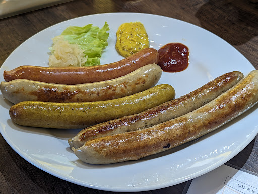 鎌倉の小町通りに複数ある、美味しいソーセージが食べられる『腸詰屋』の一つです。他の『腸詰屋』でも、イートイン可能なテーブルや椅子は用意されているのですが、ほとんどはその数は少なく、ほぼテイクアウトのみの営業形態となっています。一方この店は、イートイン可能なテーブル・椅子が充分にあり、店内はやや狭いですが充分にイートインでも楽しめるレストランとなっています。勿論、テイクアウト用のソーセージ、自宅で調理するためにパッケージされたハムやソーセージの販売も行っています。 残念ながら、店内だけでなく出入口も狭く、且つ段差があるため、車椅子等の障碍を持つ方の利用はあまりお勧めできません。 他の『腸詰屋』と同じく、非常に質の高いソーセージ料理を楽しむことが出来ます。味付け・食感・噛んだ際の固さ等様々な種類のソーセージが用意されており、同じくらいビールの種類も多種多様あります(アルコール類が苦手な人向けに、ソフトドリンク類も多数用意されています)。3〜4人のグループでの利用であれば、昼食もしくはおやつ目的での利用にピッタリなお店だと思います。内装も素晴らしく、鎌倉を始めとする神奈川の名所が描かれた絵は、利用客を充分に楽しませると思います。自由に弾けるピアノもあります。 小町通りの北側に位置すること、『腸詰屋』の多くがテイクアウト専用のお店、という認識からか、休日の昼食時間帯でもそれ程混雑しておらず、すぐに席を確保することが出来ました。スタッフの接客対応も素晴らしく、昼食等でレストラン選びに迷った際はお勧めしたい場所の一つです。