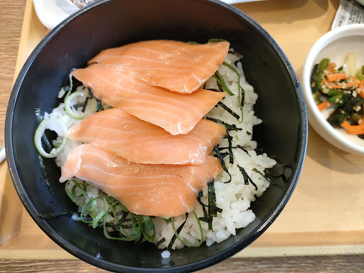 子供連れが多く、よく言えば賑やか。私にはかなりうるさくてガチャガチャした雰囲気が落ち着かなかったが、子供を連れてなら無理に大人しくさせなくても気楽に食べられそう。 選べる小丼の包み焼きハンバーグ膳、というのを注文。オーダーから提供までの時間はかなり長かった。ロボットのお蔭で退屈はしなかったが。選べる小丼はサーモン丼にし、それは普通だったが、連れの鮪のタタキは何だか袋から絞り出したままの形状で白飯の上に乗っていて…。ハンバーグは大きさもあり、熱々で美味しく頂いた。